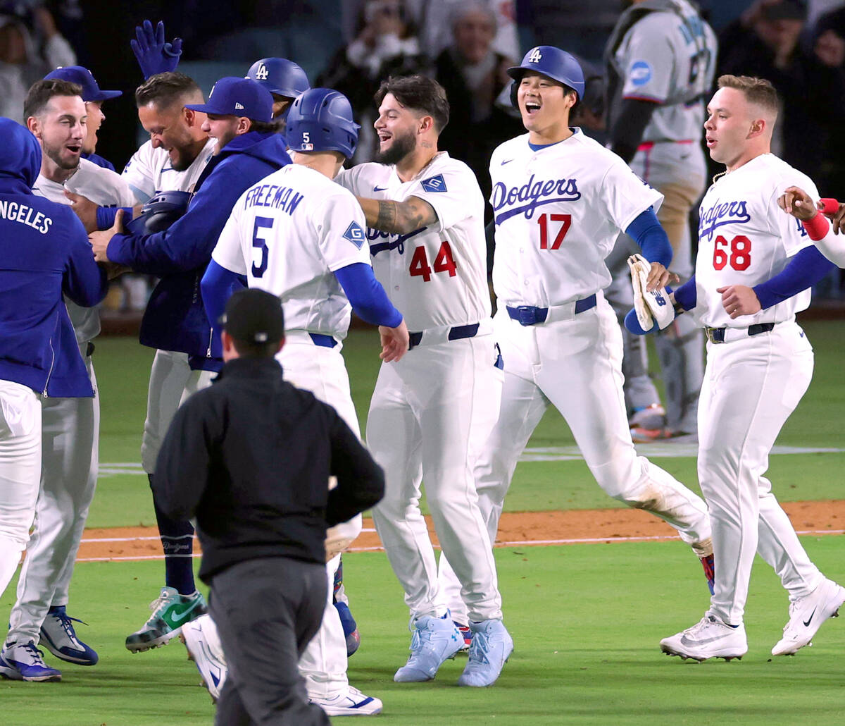 ドジャース5x-4 マーリンズ(27日、米カリフォルニア州ロサンゼルス=ドジャースタジアム)
