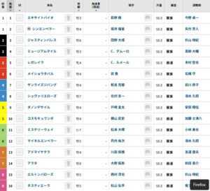 出馬表はSPAIA競馬さまより引用。ありがとうございます。